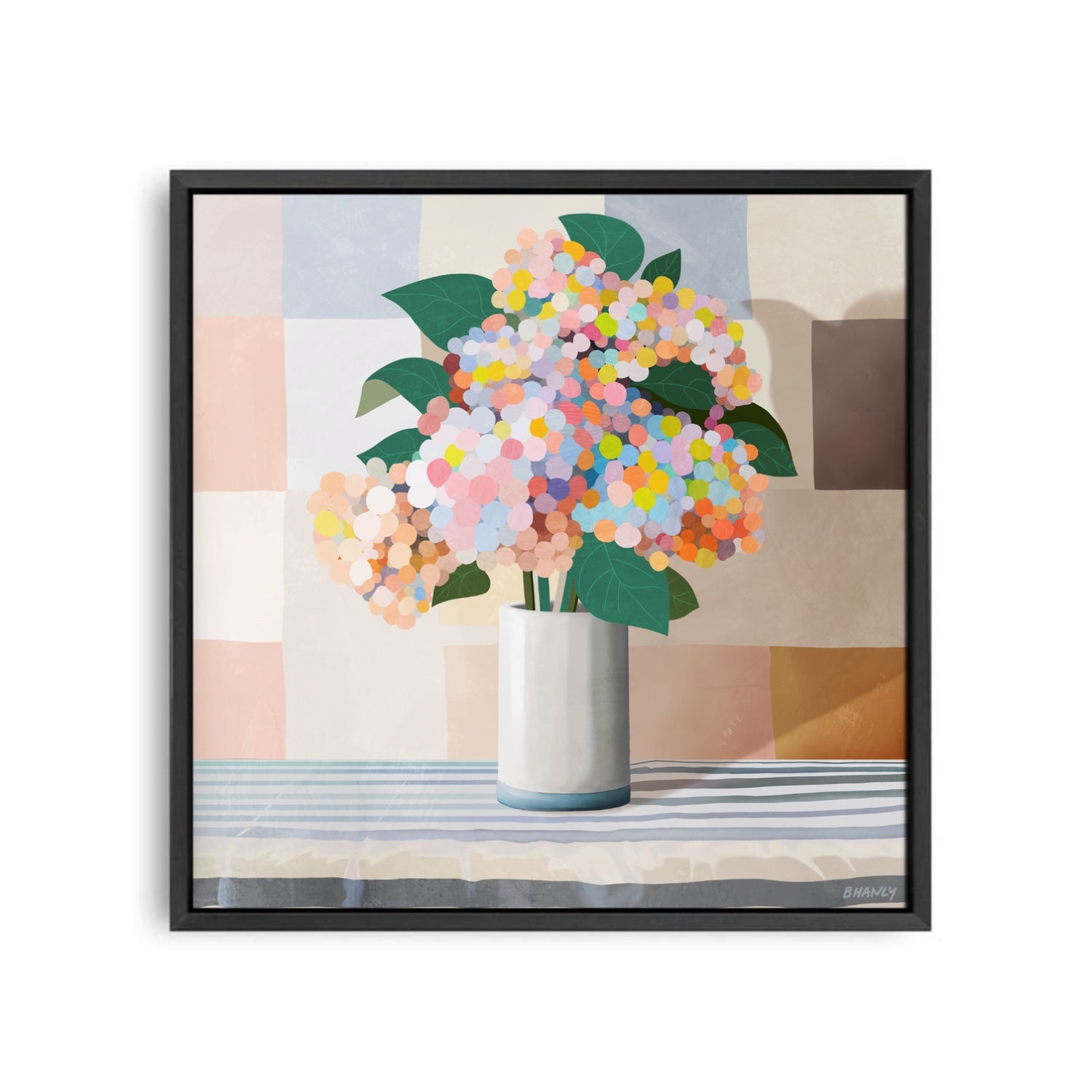Unveiling our 'Kaleidoscope Blooms' premium canvas print, where the timeless hydrangea gets a technicolor twist. Each bloom bursts with a spectrum of colours, confidently sitting in a crisp white vase. The backdrop? A subtly abstract checkered pattern, dabbling in muted blues, gentle pinks, and a touch of ochre. It's a dance between traditional beauty and modern contemporary flair. So, whether you're dressing up your living room, bedroom, or that cozy reading nook, this print blends artful design with a splash of nostalgia. Bring home 'Kaleidoscope Blooms' and watch your space transform into an artful haven.