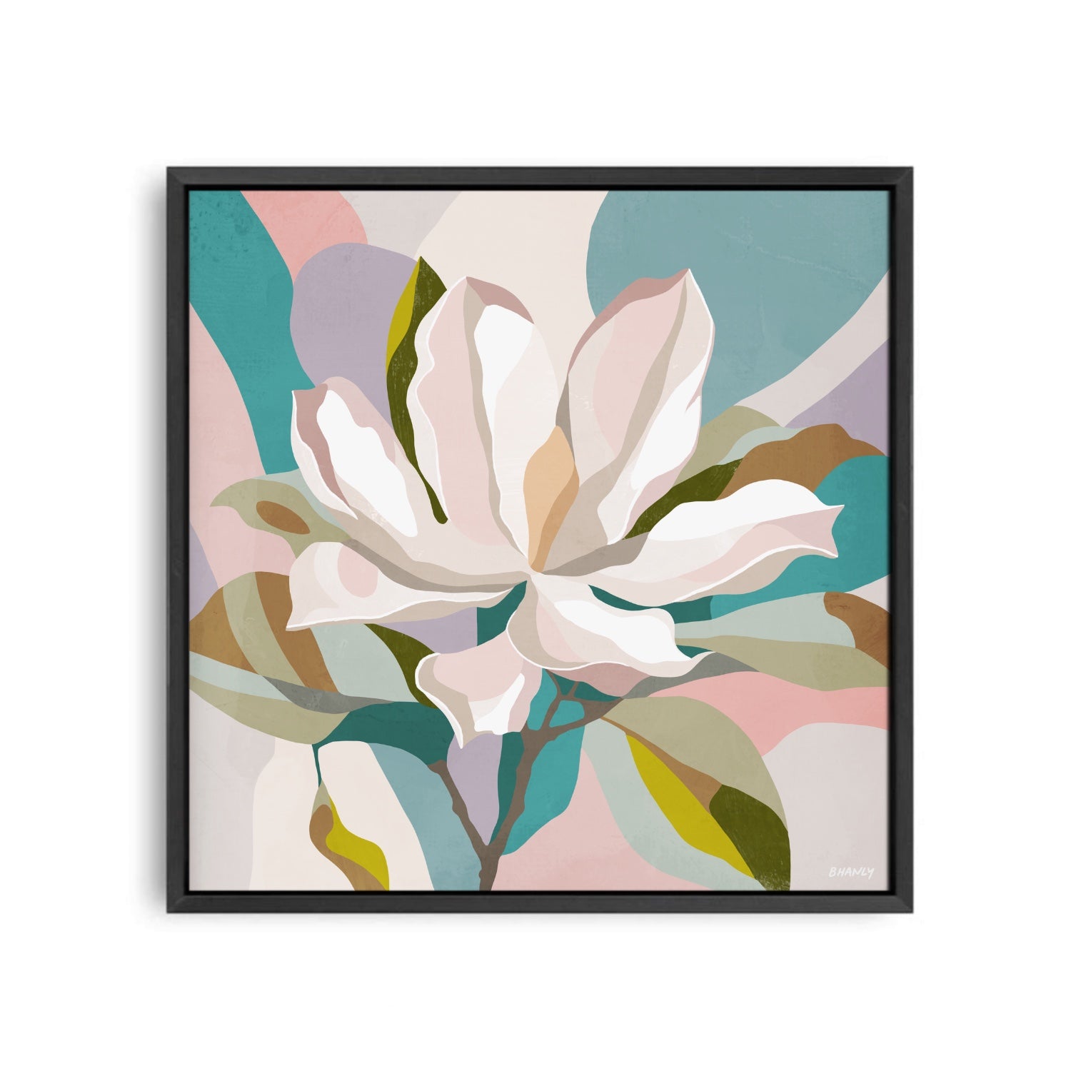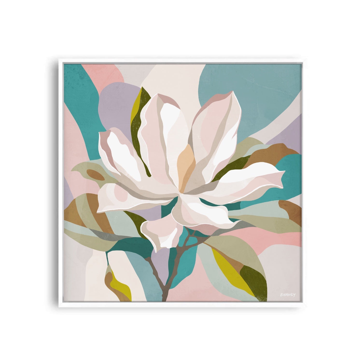 Ready for a decor upgrade? Bring the timeless beauty of magnolia blooms into your space with our stunning art print. Capturing the delicate elegance of magnolia flowers against a backdrop of abstract pinks and turquoise, this piece is sure to be a statement piece in any room.