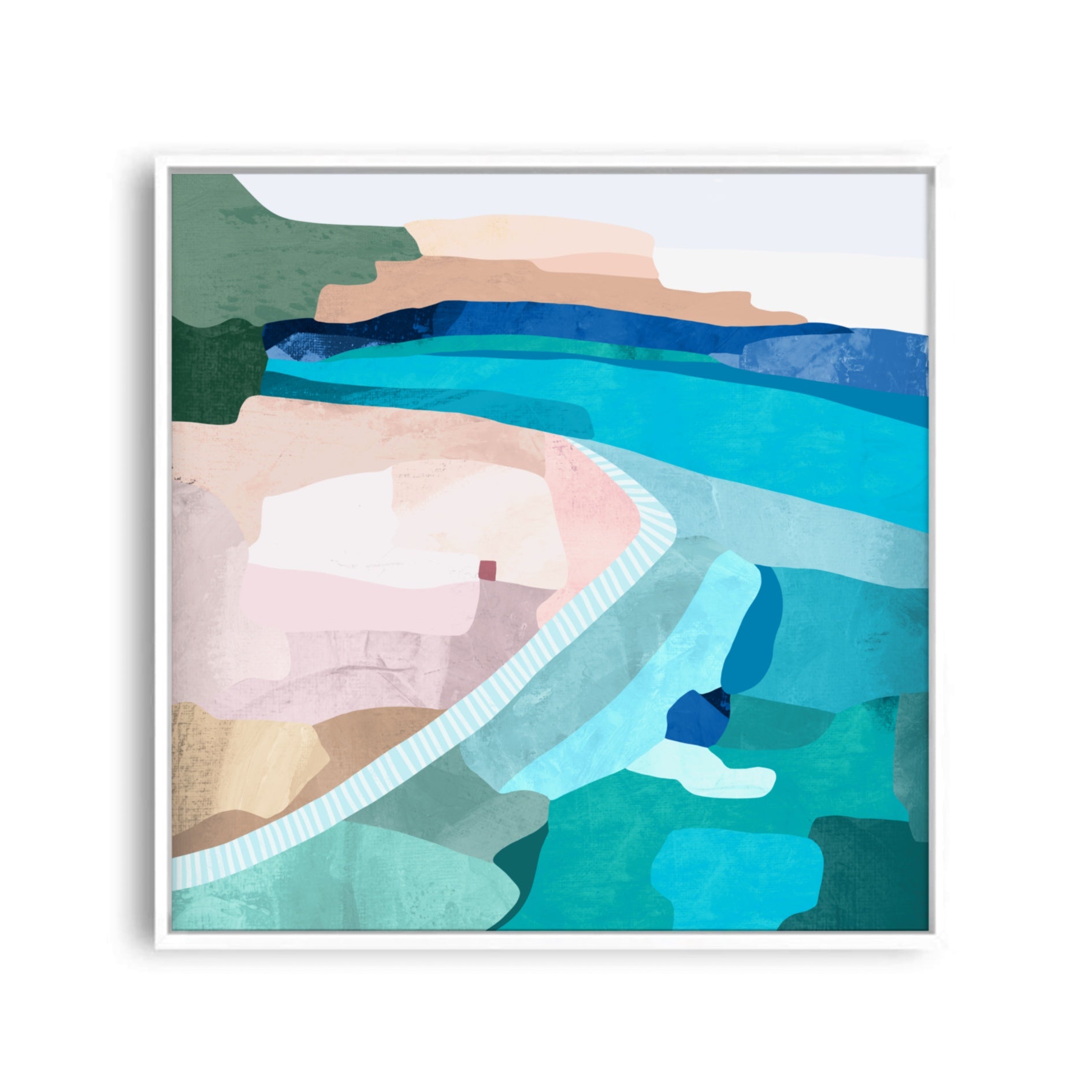 Dreaming of a coastal getaway? "Trip to Paradise" is an abstraction of a beach scene, and full of fresh coastal colours. You can almost smell the salty air and hear the waves crashing..