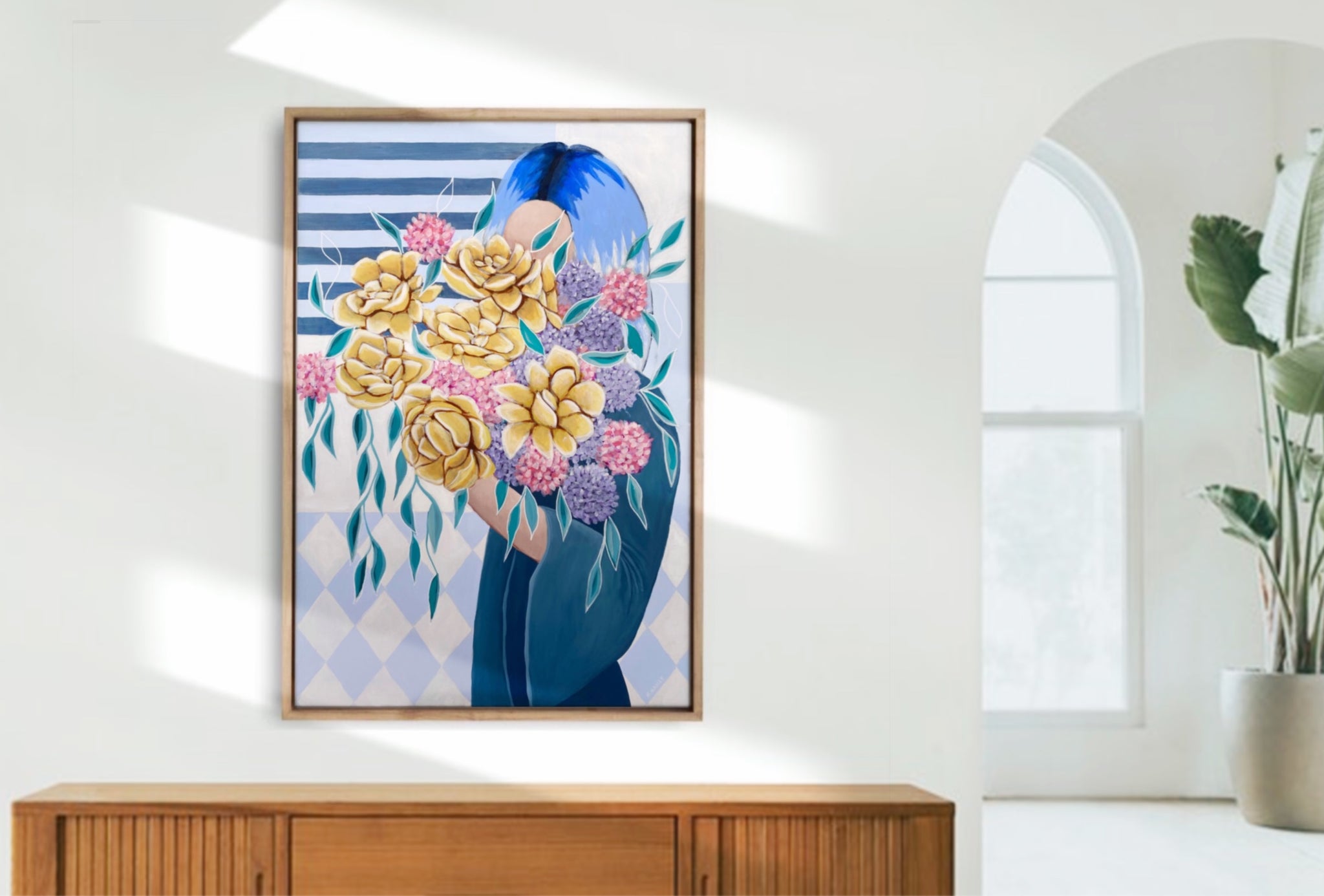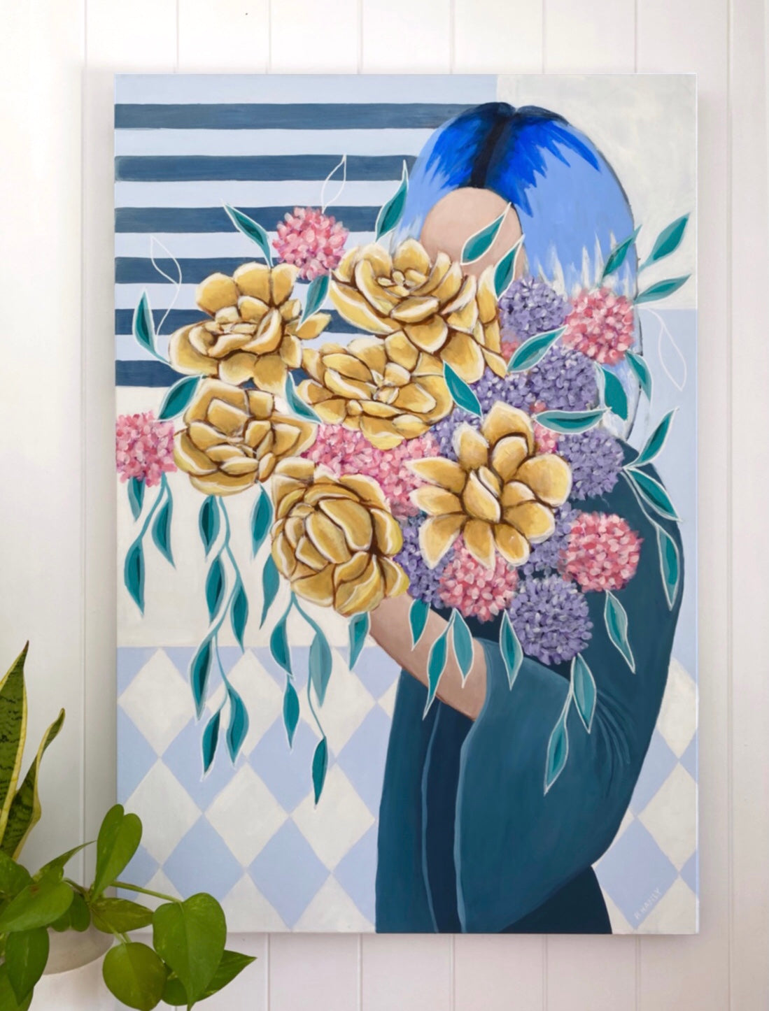 ‘You’re Blooming’ is an original artwork, hand painted with acrylics on canvas and would make a stunning statement in any room. This painting has been varnished for protection and the sides painted and wire added on the back, ready to hang.
