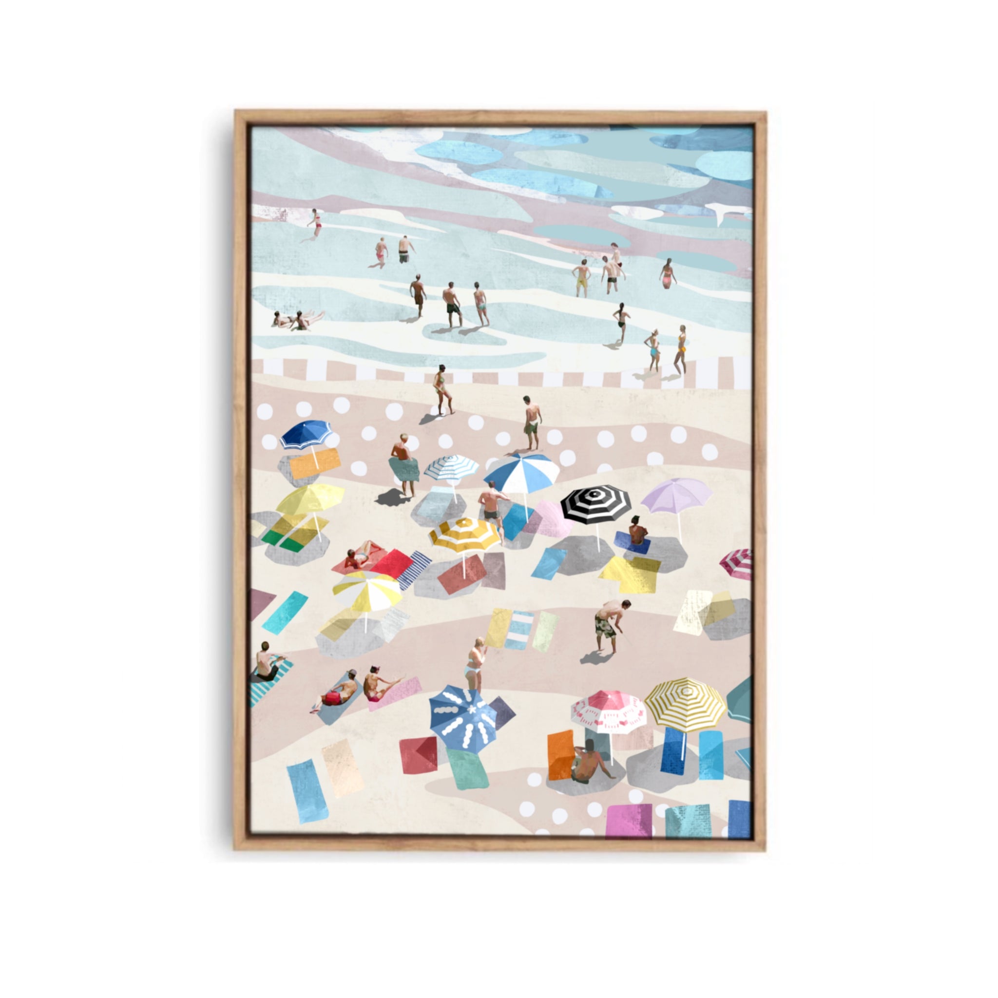 Add some modern coastal vibes to your space with this beautifully hand drawn landscape beach print. Complete with calming blues and pops of pattern and colour this print with be the perfect fit for a beach house or coastal home.